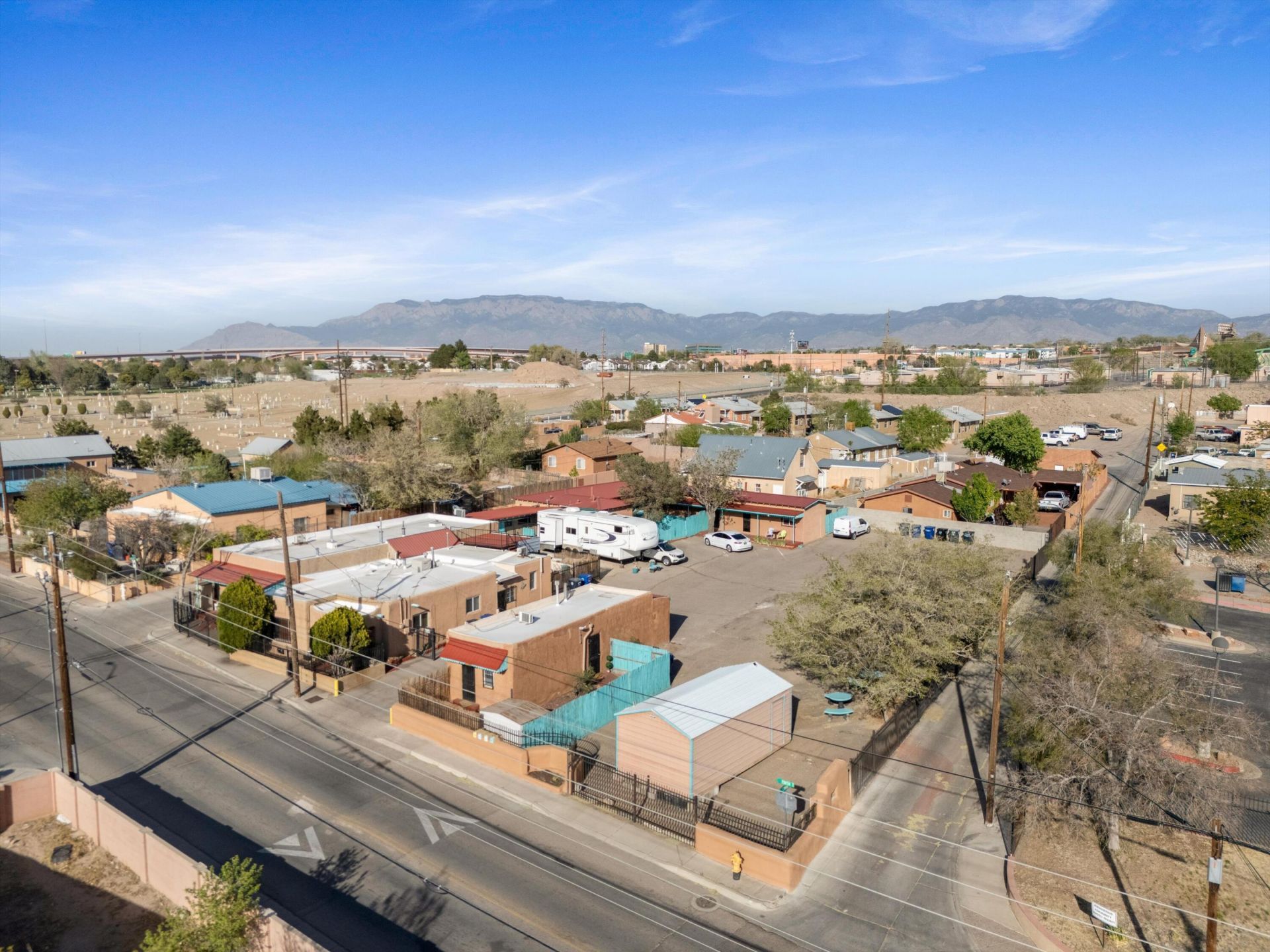 Introducing Academy Casitas, Albuquerque's unique tiny village in the heart of downtown. This 8-unit hacienda-style community sits on a private, scenic .52 acre lot with ample parking and mixed-use zoning. Thoughtfully developed over 20 years, the property blends Southwestern charm with functional design, offering privacy and dedicated outdoor living spaces. Features include an on-site laundry room, a Morton steel building, and an RV pad with hookups. Well maintained with updates to roof, HVAC, appliances, and sewer/water lines. Flexible rental options for short- or long-term use. Turnkey asset with strong cash flow and upside potential.