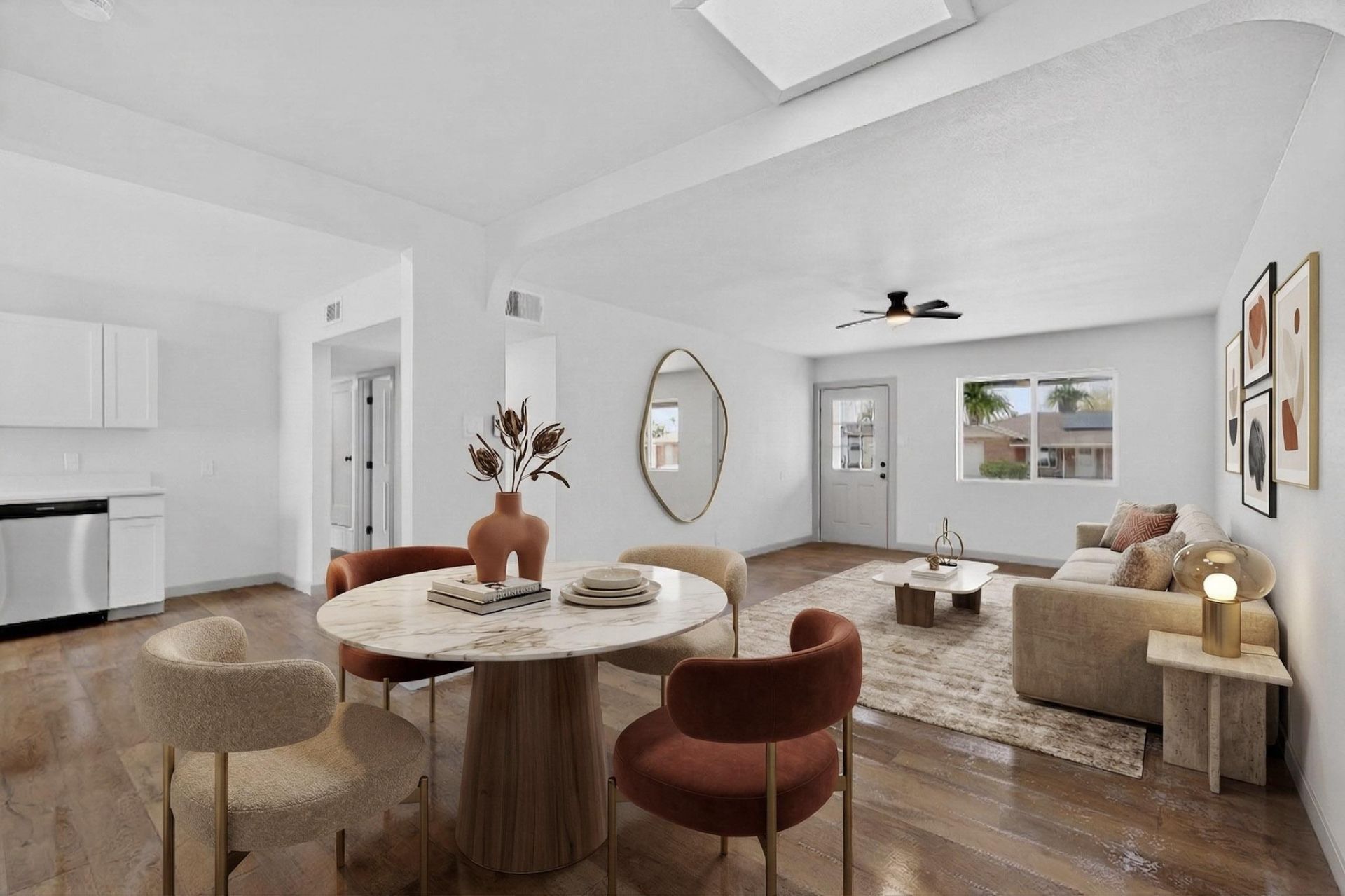 Step into this stunning 4-bedroom, 2-bath home where modern style meets everyday comfort. The inviting exterior features fresh paint, a spacious concrete driveway and easy-care landscaping. Inside, a bright open layout welcomes you with warm wood floors, exposed beams and abundant natural light. The sleek kitchen shines with white cabinetry, quartz-style countertops and stainless steel appliances-perfect for gathering and entertaining. Spacious bedrooms offer flexibility for any lifestyle, while both bathrooms showcase clean, modern finishes. Move-in ready and designed to impress, this home is the perfect place to settle in and enjoy.