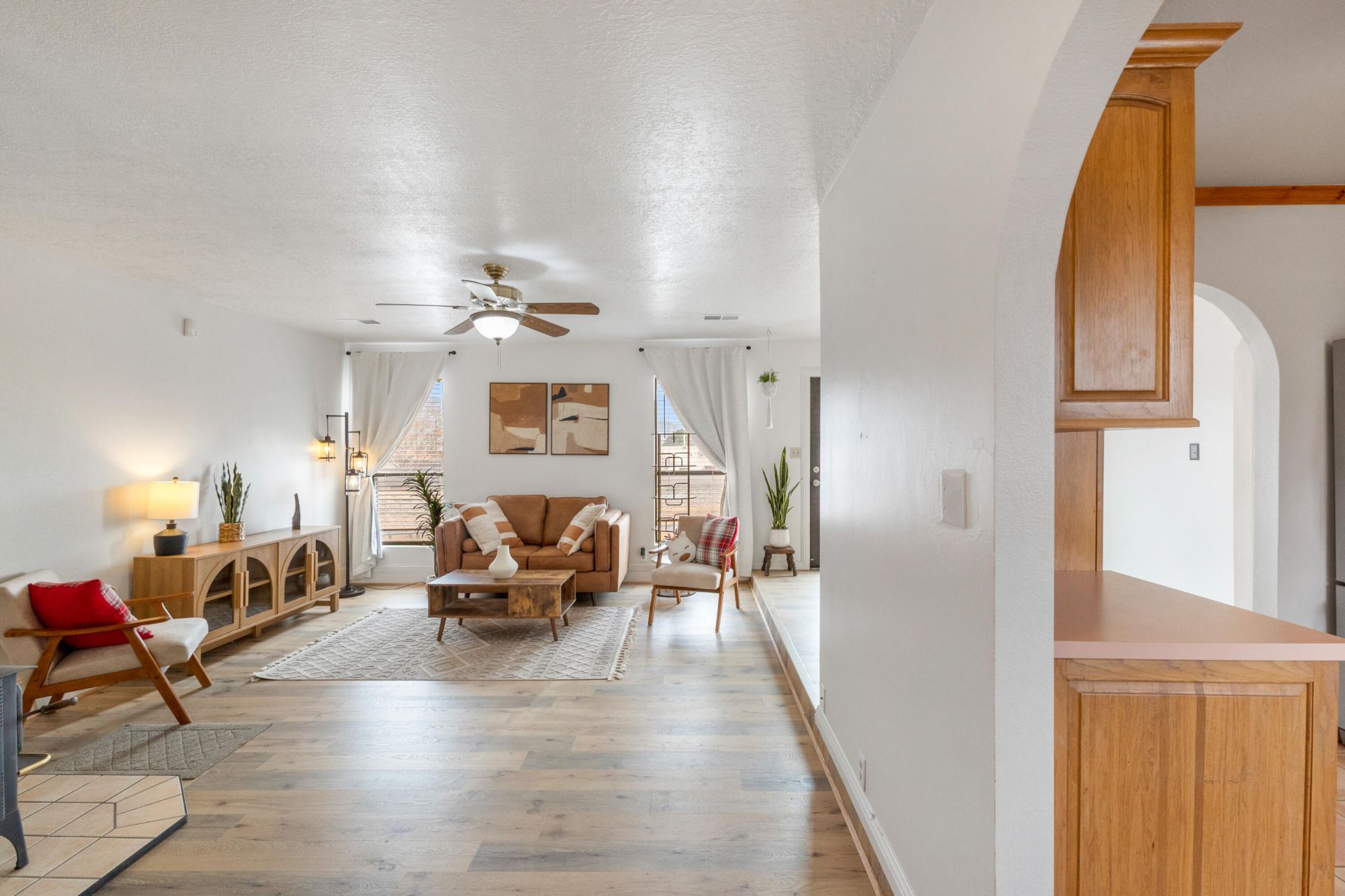 Seller is willing to address the back siding repair post closing. Contractor bid has been obtained and is available upon request. 3-bedroom, 2-bath home offers flexible living with a dedicated office and additional flex space, perfect for today's work-from-home or family needs. The kitchen is crafted with custom hickory cabinets and all appliances, purchased within the last 2-3y will convey. Upgrades include a brand-new HVAC system, new roof with warranty, new flooring, and fresh interior paint. This is a move-in-ready home. Enjoy the separate laundry room and a large, blank-canvas backyard, ready for you to create your own oasis with beautiful mountain views. Situated on a .31 acres corner lot. No HOA and space for RV or toys.