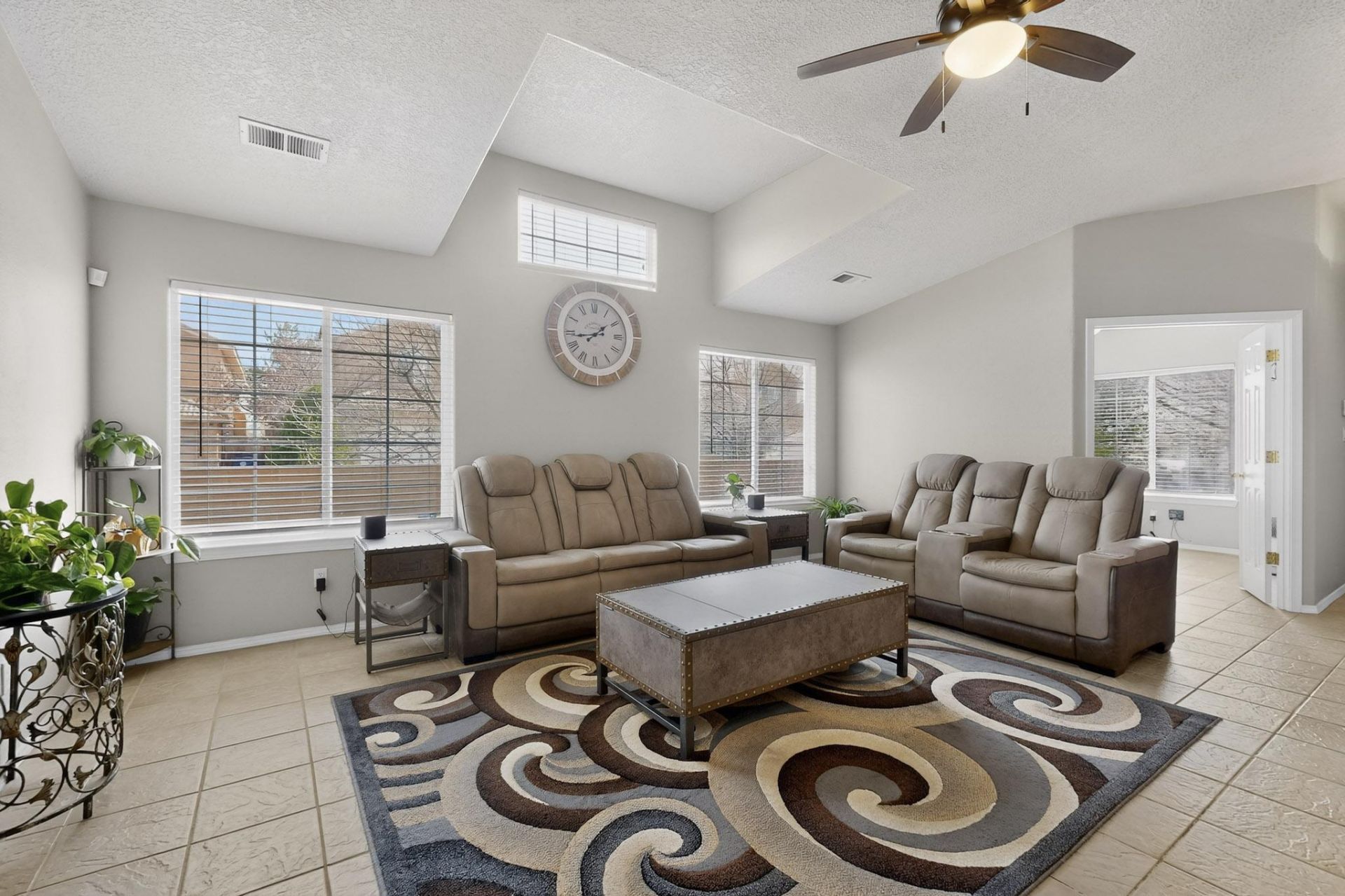 Welcome to this beautifully updated home on a quiet cul-de-sac corner lot.This property has seen over $80,000 in thoughtful upgrades.One of the biggest highlights is the solar system that will be paid off at closing, offering long-term energy savings and efficiency.Inside, you'll notice the fresh interior paint and updated LVP flooring, creating a clean, modern feel throughout the home. The sellers also upgraded the electrical panel to 200A. Plenty of room to add a Hot Tub if you like inder the finished Pergola in the newly landscaped backyard. The primary suite has been completely reimagined, featuring a fully renovated bathroom tastefully updated with dual sinks and updated Shower. Step out onto the private balcony where views of the Sandia's will greet you warmly. Don't Wait on th